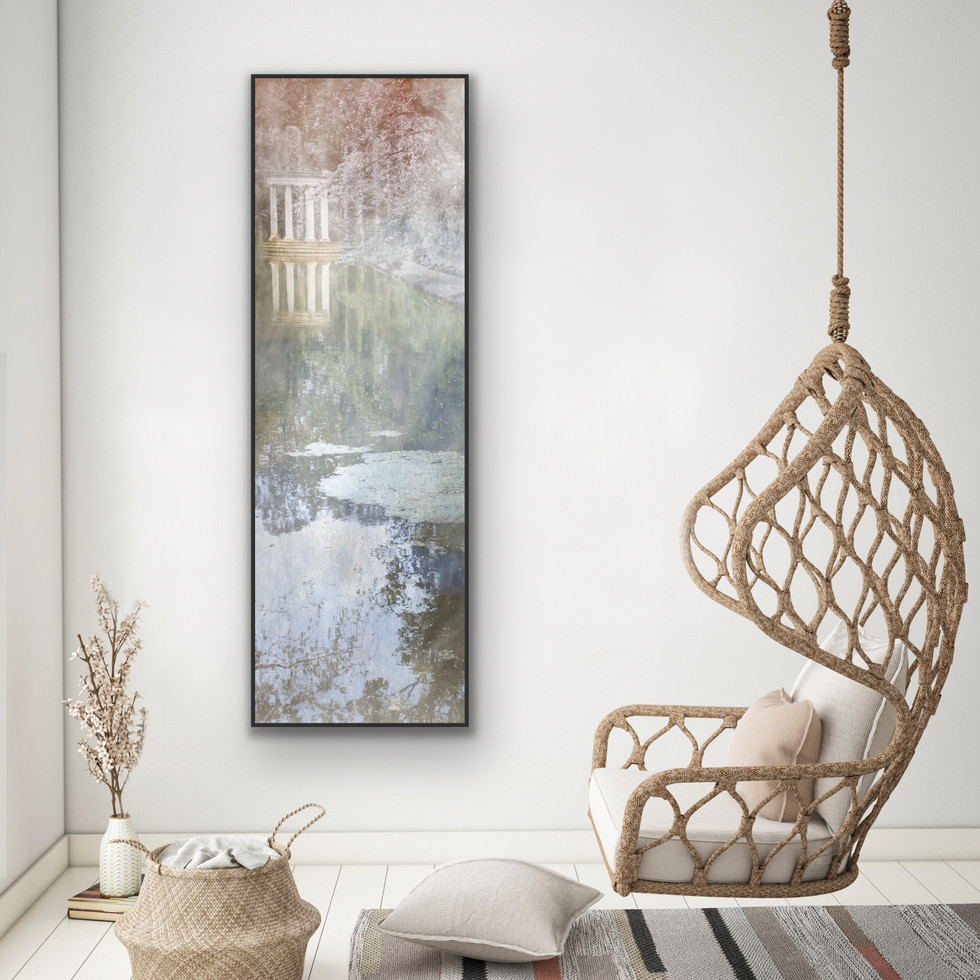 Lerretsbilde har sort innramming av tre.